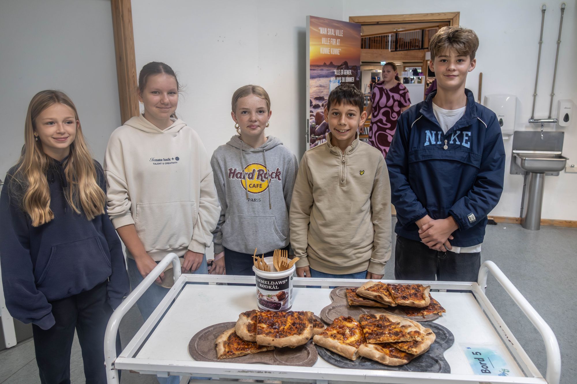Her har vi så dagens fem bordhelte fra 7. klasse. De sørgede for, at der kom mad på bordet, og at ingen manglede noget. Foto: Jim Hoff