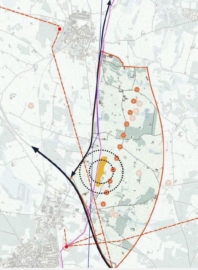 Mulig placering af biogasanlægget inden for den stiplede cirkel. Grafik: Eurowind