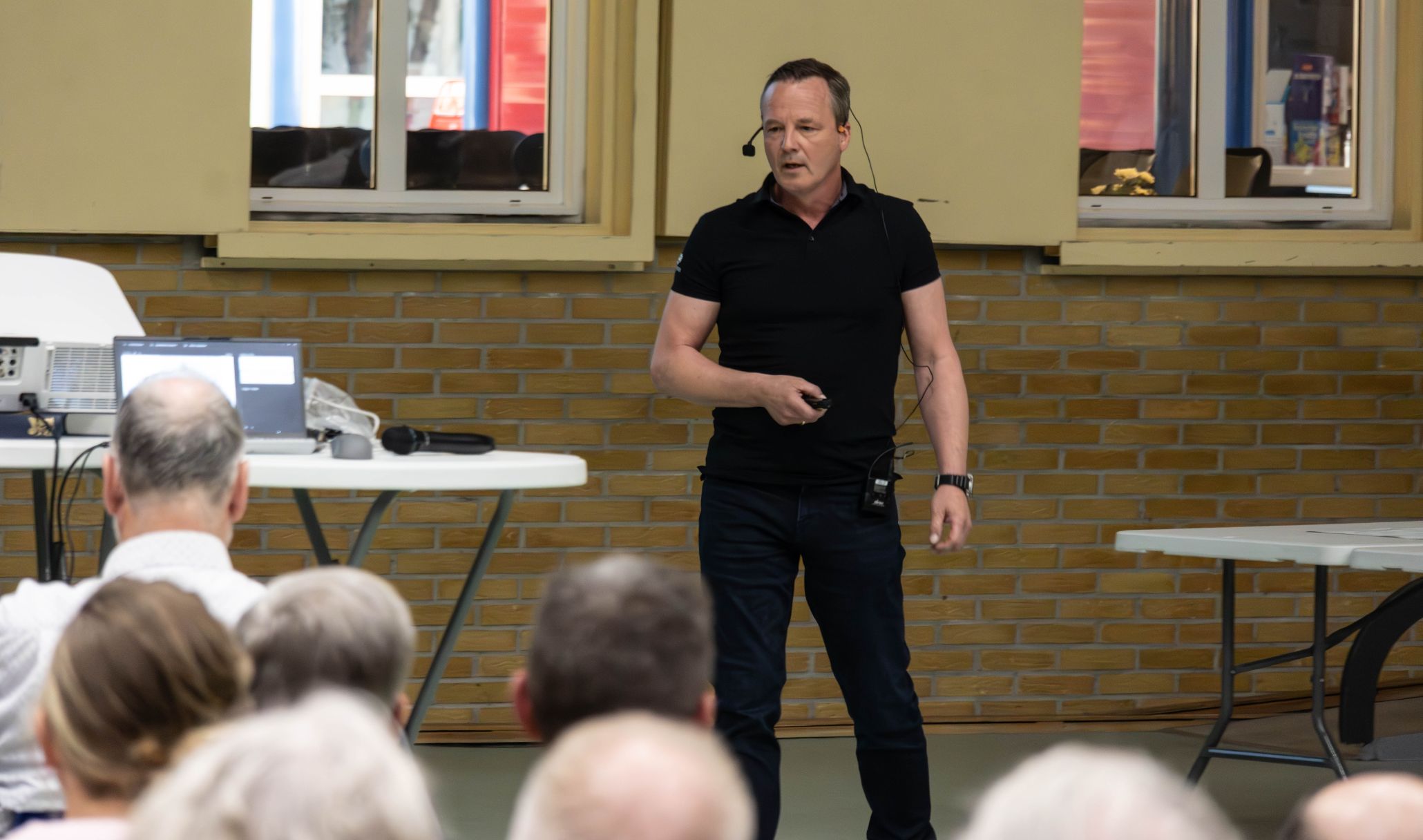 Direktøren for Give Fjernvarme, Peter Mikael Kjer, talte varmt for Energipark Give, fordi det kan betyder stabile og borgervenlige energipriser over mange år. Foto: Jim Hoff