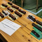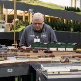 -Vi ankom i år torsdag formiddag til Givskud, og så gik vi i gang med at gøre klar og stille op. Vi var cirka 40 mand, der gik i gang, og vi var færdige med opstillingen cirka sidst på eftermiddagen. Vi har en ret fast manual for hvordan det hele skal stilles op, jo selvfølgelig er der noget nyt ind imellem, men generelt har vi et godt overblik på hvad der skal ske under opstillingen, og der plejer at gå fint, fortæller Søren Bendtsen fra Fremo, mens han gør klar til at styre hovedbanegården i den danske by ”Padby”.