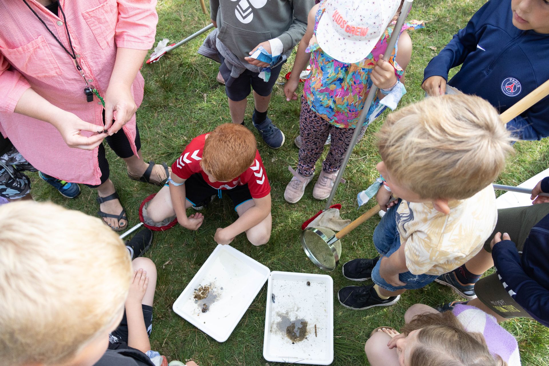 Man kunne godt have valgt at gøre ekskursionen til et naturfagligt projekt med stor vægt på indlæring om naturen, og denne del af pædagogikken var da også til stede - ikke mindst nede ved søen. Men det vigtigste denne dag var at styrke fællesskabet på tværs af de fire årgange - venskab gennem kendskab.