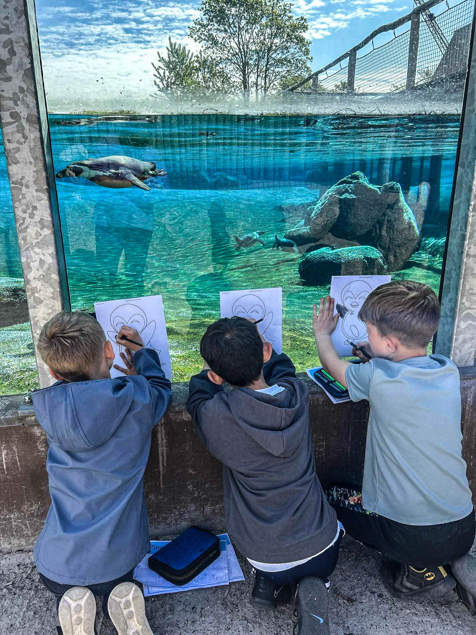 Mandag: De mindre var rundt i parken for at tegne dyrene, mens de større lavede aktiviteter, som de skulle lave for de mindre dagen efter