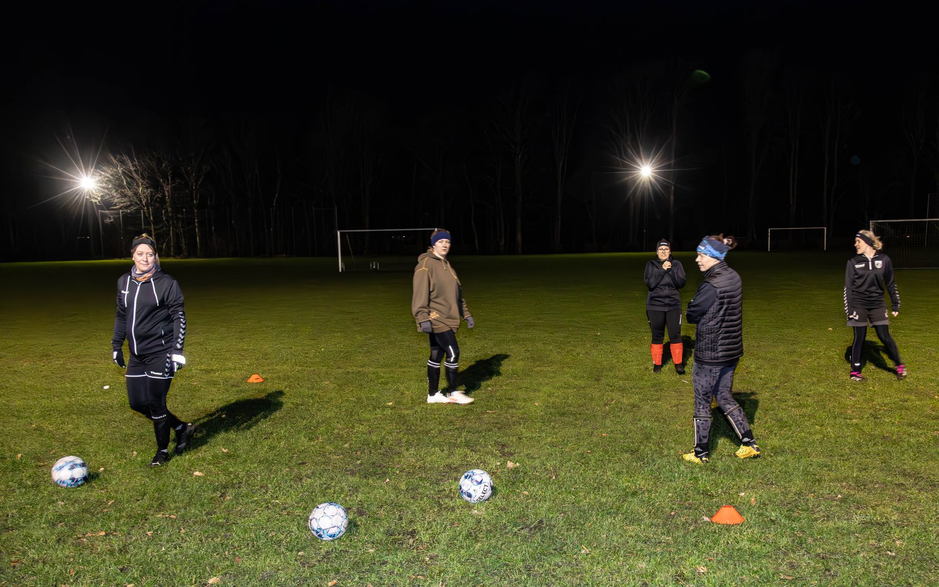 Dameholdet deltager i DGI's 7-mandsturnering, og ser man på den samlede trup. Er det sådan, at nogle gerne bare vil træne, mens andre gerne vil både træne og spille kamp. Der er fast træning klokken 19.00 på Vonge Ground ved hallen i Vonge – og avisens udsendte skal hilse at sige, at pigerne/damerne virkelig hygger sig og giver den gas.