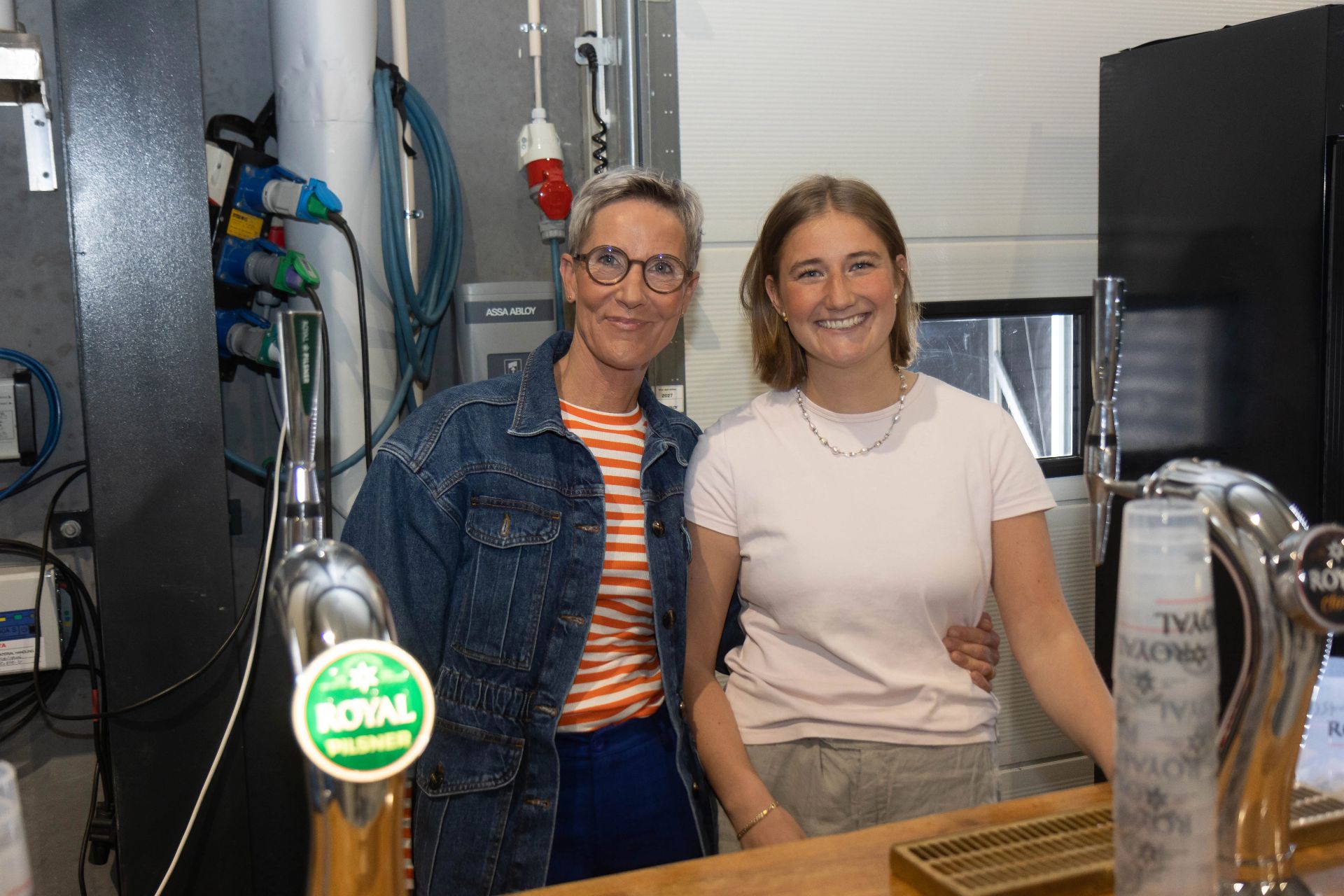 Det var A-holdet, der havde fået tjansen med at passe den velforsynede bar - og de to friske piger havde nok at rive i. Foto: Jim Hoff
