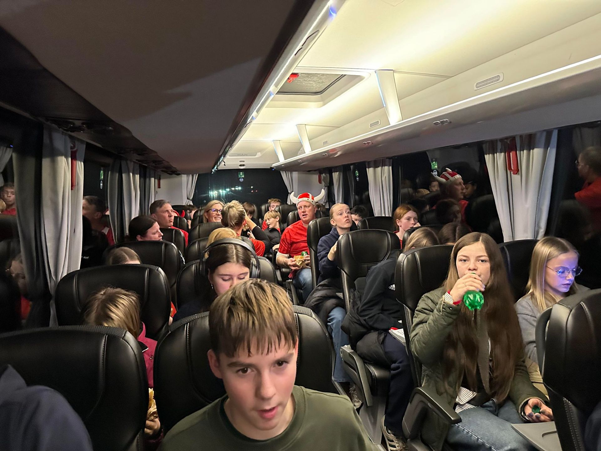 De unge mennesker hyggede sig i bussen. Foto: Lars Secher