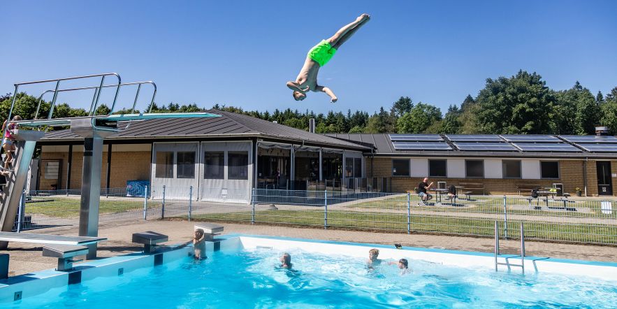 Sommer og sol over Give: Så er der i den grad kommet gang i friluftsbadet