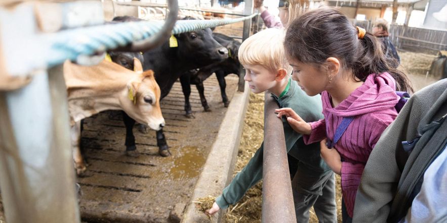 Køerne på Engmark havde 1. klasses besøg fra Hedensted – og kattene stjal igen billedet