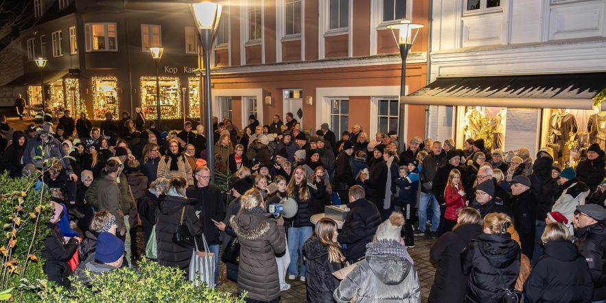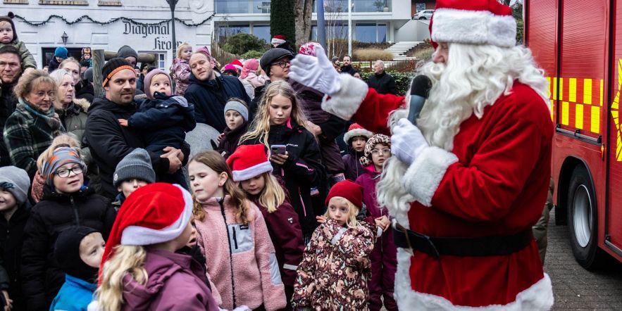 Julebrandmanden på plads: Juletræet på Torvet i Give blev tændt for fuld udrykning