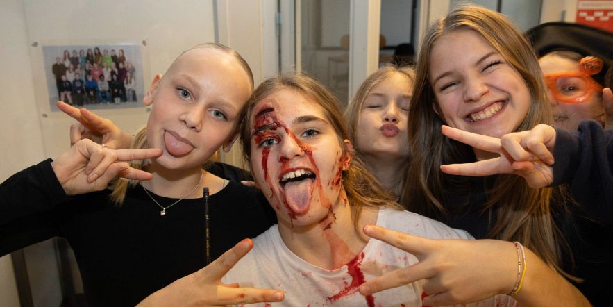 I røg og damp: Eleverne på Givskud Skole gav den fuld Halloween-gas
