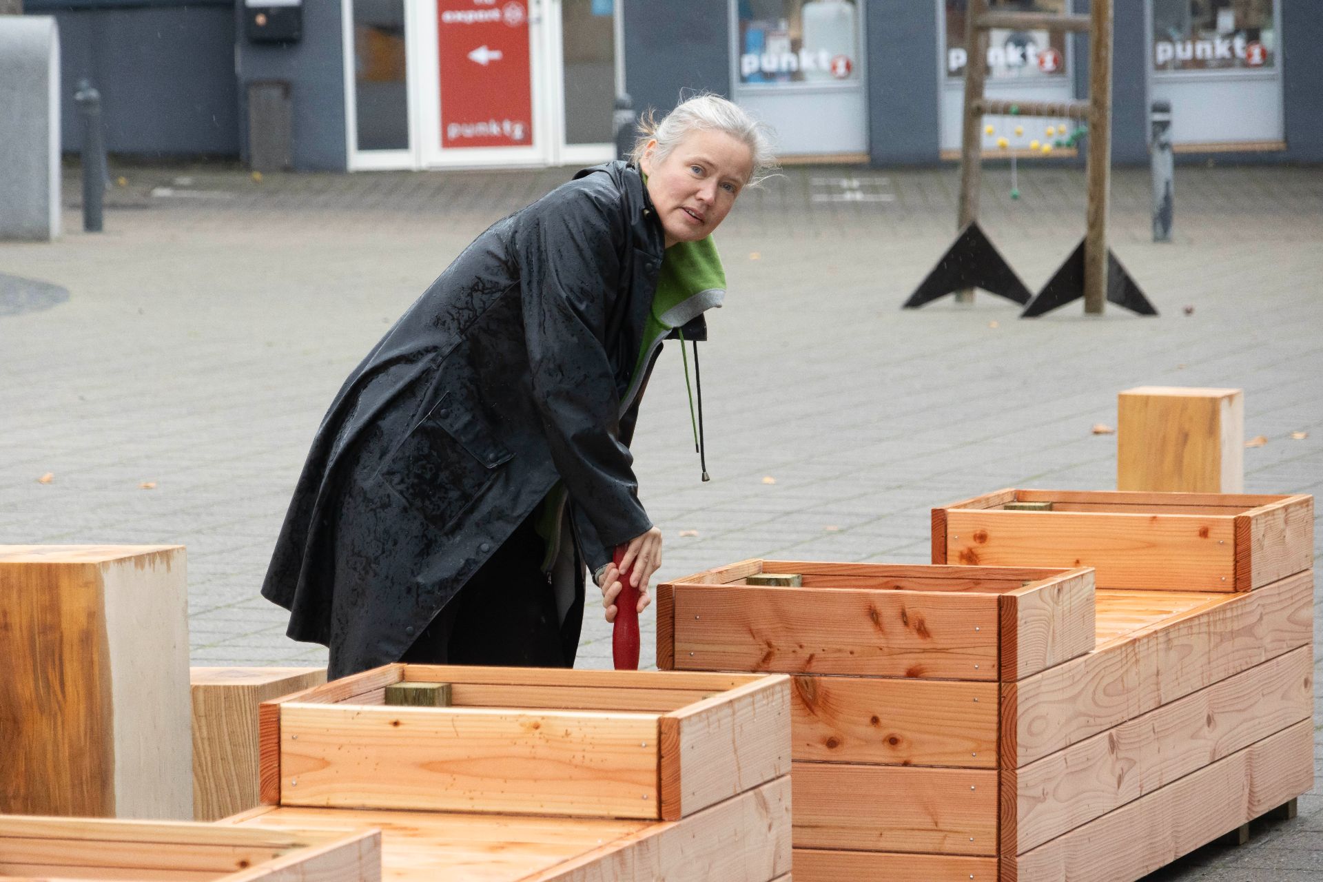 Hun kan også fortælle, at der vil blive placeret en hængekøje ved Allégade, og at der vil blive sat en række siddestubbe op i forbindelse med de nye blomsterbænke.