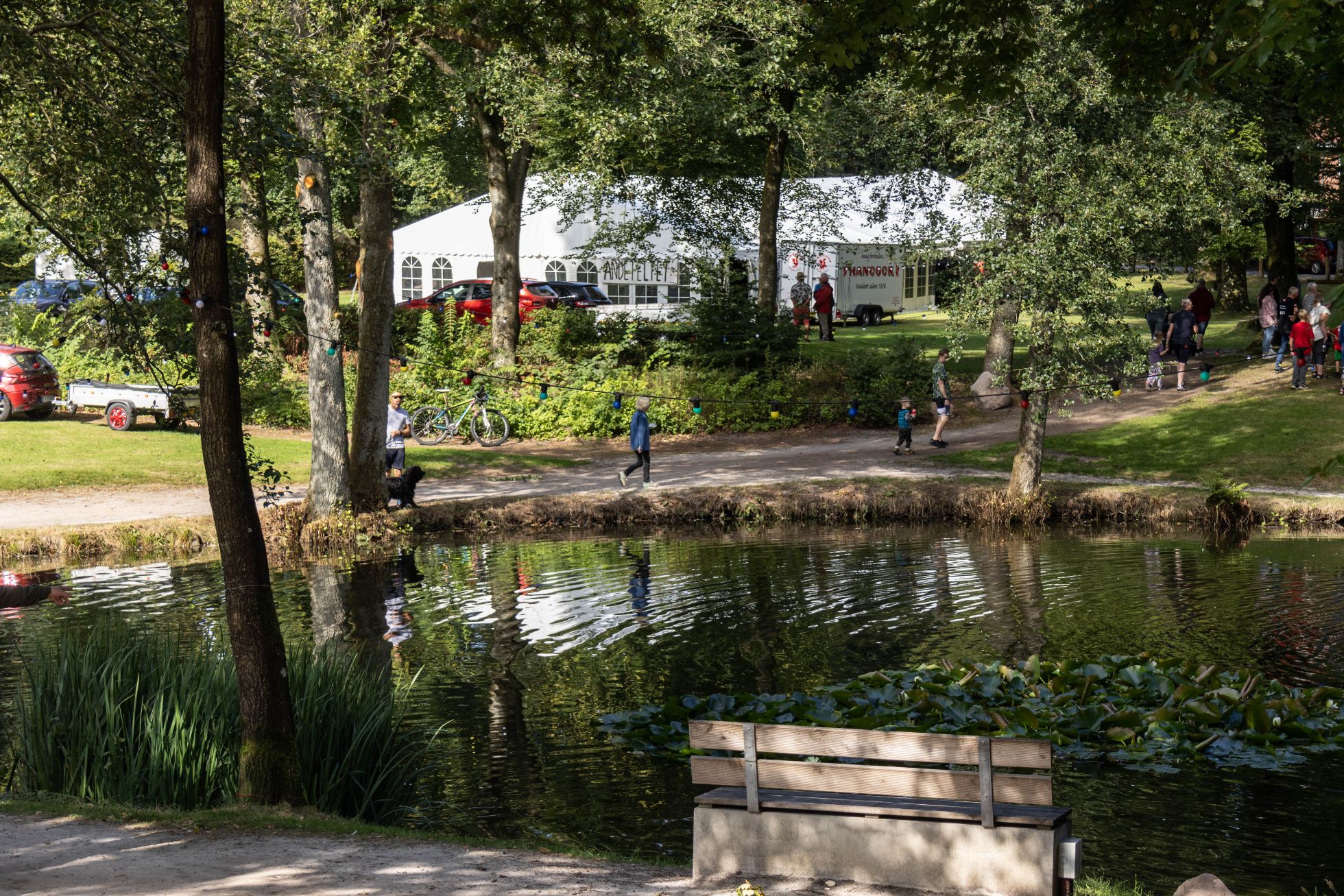 Små 100 meter fra plænen ved scene finder vi denne søndag i oprydningens tegn Andeteltet, der dannede base for den store voksne publikumsfest om aftenen. Ænderne i dammen svømmer upåvirkede rundt efter lørdagens bombardement af hygge og festivitas, og oppe ved det store festtelt finder avisens udsendte en række friske frivillige, der er trukket i oprydningstøjet. Heriblandt Lone Flø Jensen fra bestyrelsen i Give Lystanlæg og formand Benny Karlskov.
