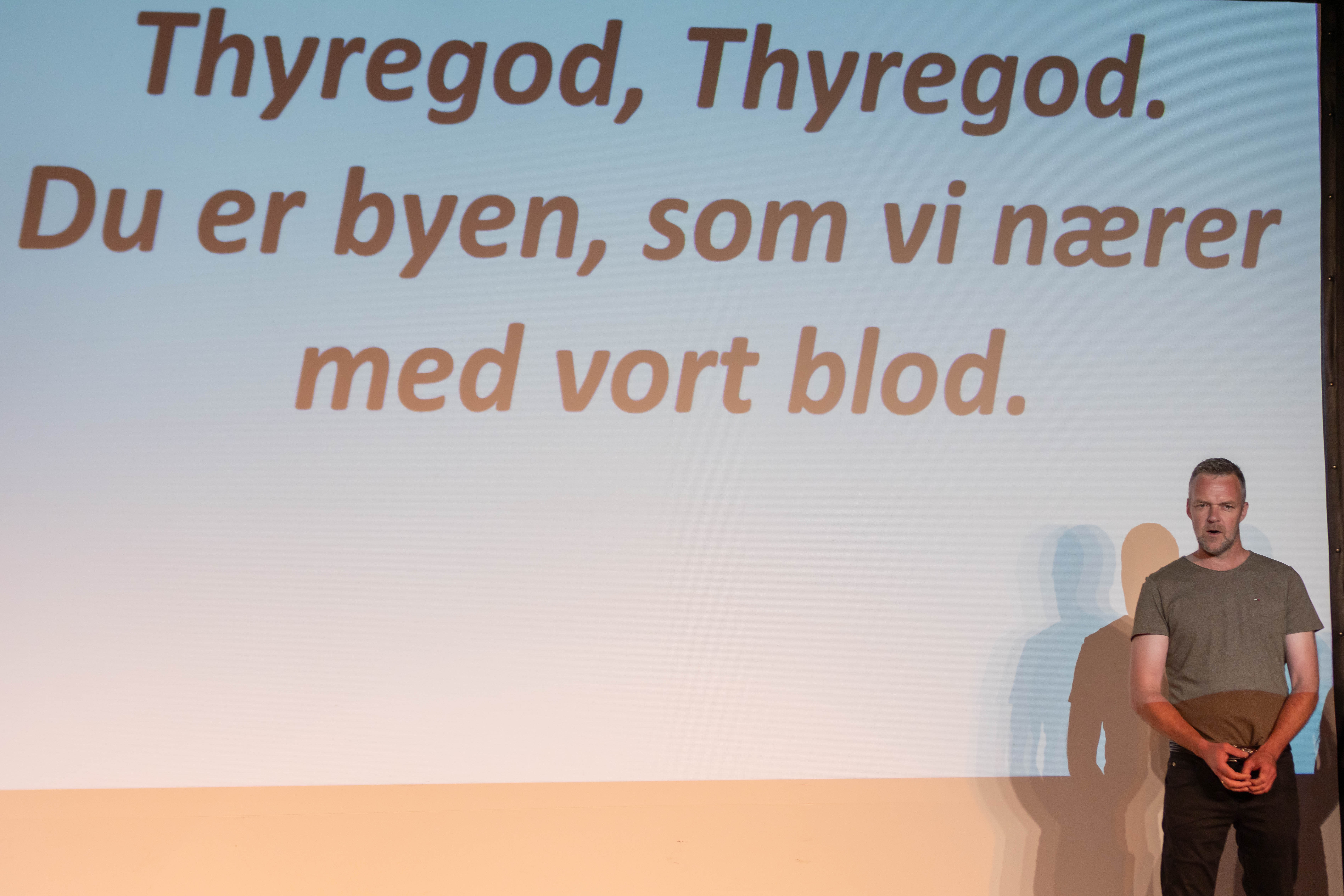 -Vi har i alt 16 numre plus den afsluttende Thyregod-sang. Der er 11 sketches samt 5 videoindslag, og ligesom i 2023 står vi nu selv for musikken – dvs. at vi ikke har noget revyorkester. Det fungerede fint i 2023, og vi har fået en del positiv feedback på det setup, så det var en fin løsning. Det er også lidt nemmere for os at styre, og det giver os flere muligheder, konstaterer revy-veteranen Henrik Højgaard.