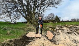 Foto: Nu er arbejdet med at pille brosten og fliser på Torvet i Give gået i gang - og snart skal Væksttræet flyttes om på Bøgetorvet. Foto: Jim Hoff