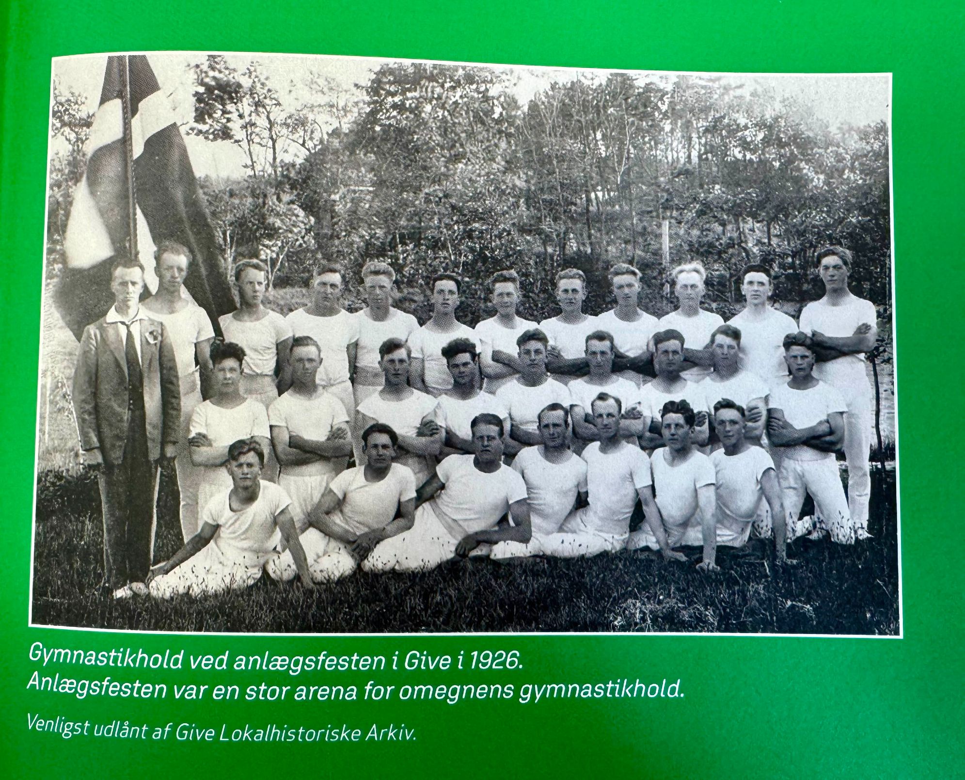Foto fra 1926 - det var dengang rigtige mænd gik både til gymnastik og i hvidt. Foto udlånt af Give Lokalarkiv.