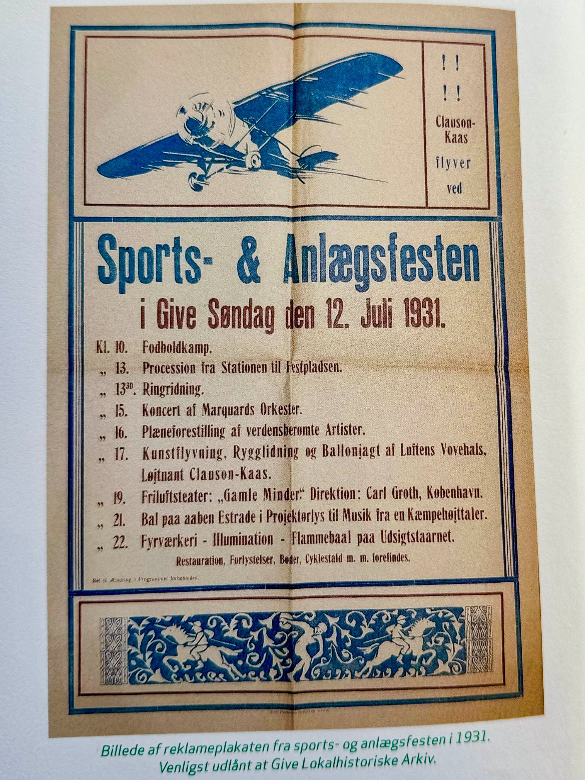 Rigtig fint program til Sportsfesten i Anlægget i 1931. Foto udlånt af Give Lokalarkiv.