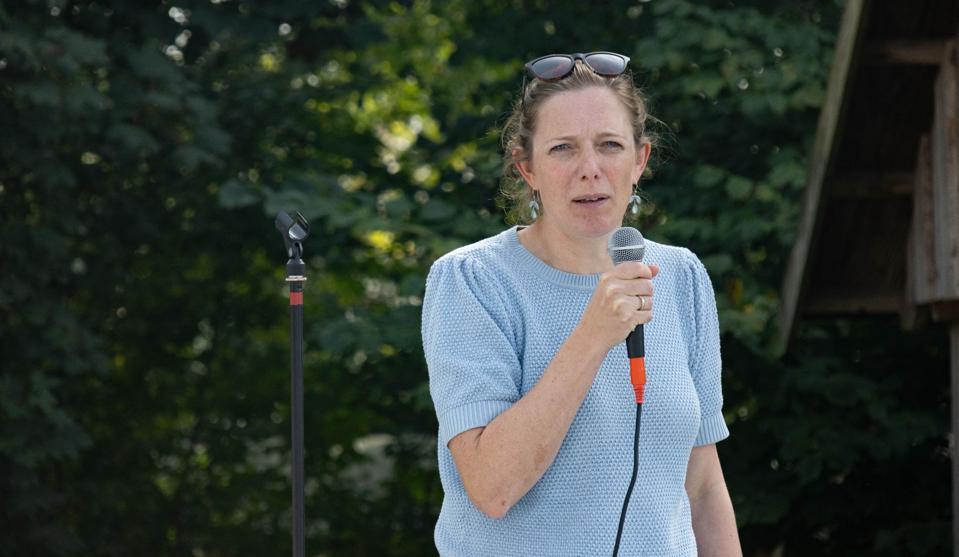 Anne Sofie Stjernholm, der er næstformand for Udvalget for Lokalsamfund og Nærdemokrati, roste Vonge/Kollemorten for deres store viljestyrke og ildsjæleri i forbindelse med at holde gang i de to lokale samfund. Foto: Jim Hoff
