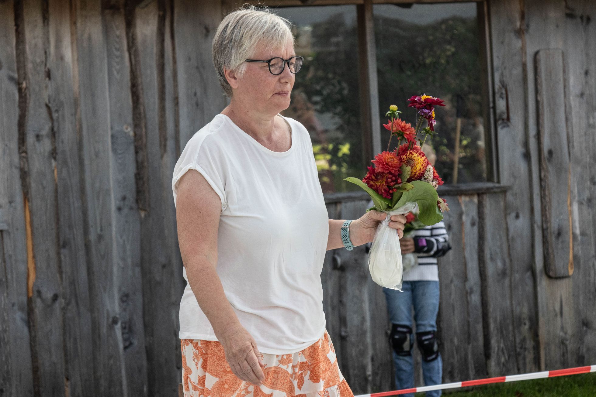 Erna storgaard har leveret en kæmpeindsats i forhold til at skaffe de fornødne midler til den nye skaterbane - og det blev hun belønbet for med en buket blomster. Foto: Jim Hoff