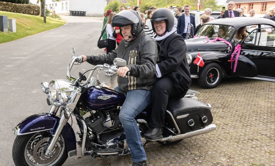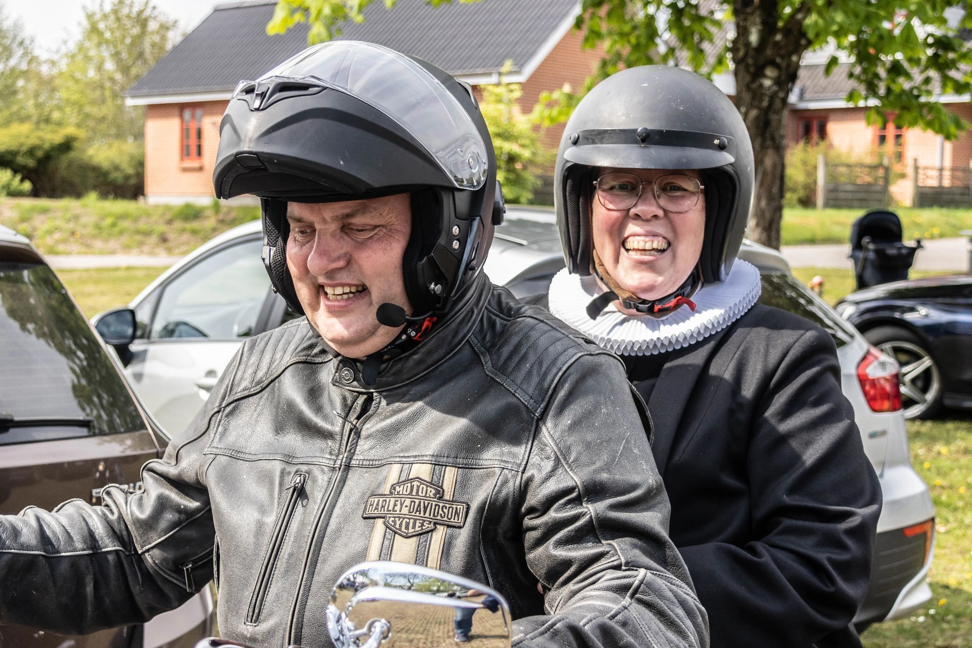 En stilfærdig beklagelse til et bryllup sagt med glimt i øjet endte med en forrygende tur på en Harley Davidson i fuldt ornament for den lokale sognepræst Henriette Hauritz Jørgensen efter veloverstået konfirmation i Gadbjerg Kirke. Hvordan det hænger sammen, kan du læse mere om her.