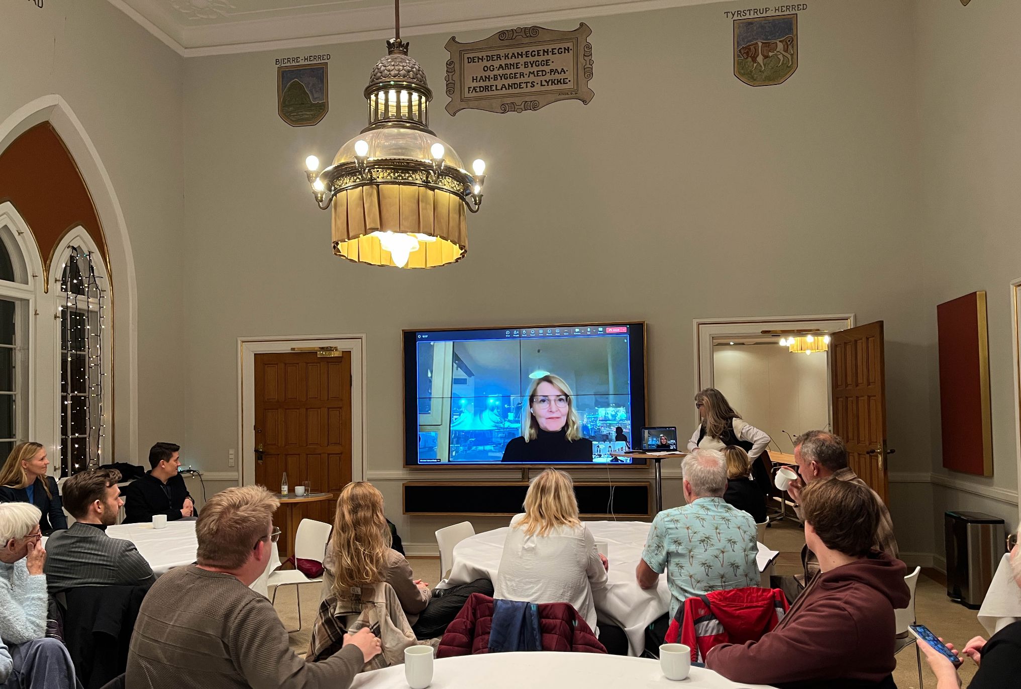 Christel Schaldemode (S) var med på mødet live fra Bruxelles via storskærm. Privatfoto