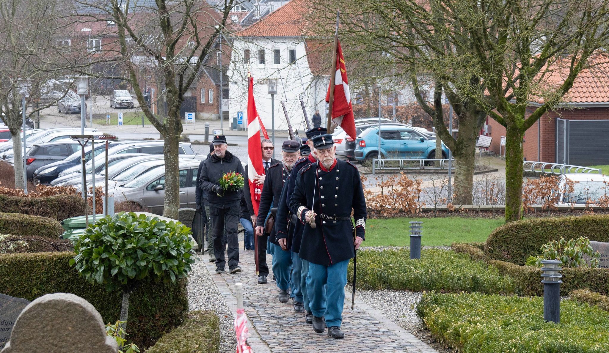 Flotte fyre i flotte uniformer: Foreningen af Jydske Landsoldater fra 1864 er en uundværliog del af den fine mindehøjtidelighed for Niels Kjeldsen. Foto: Jim Hoff