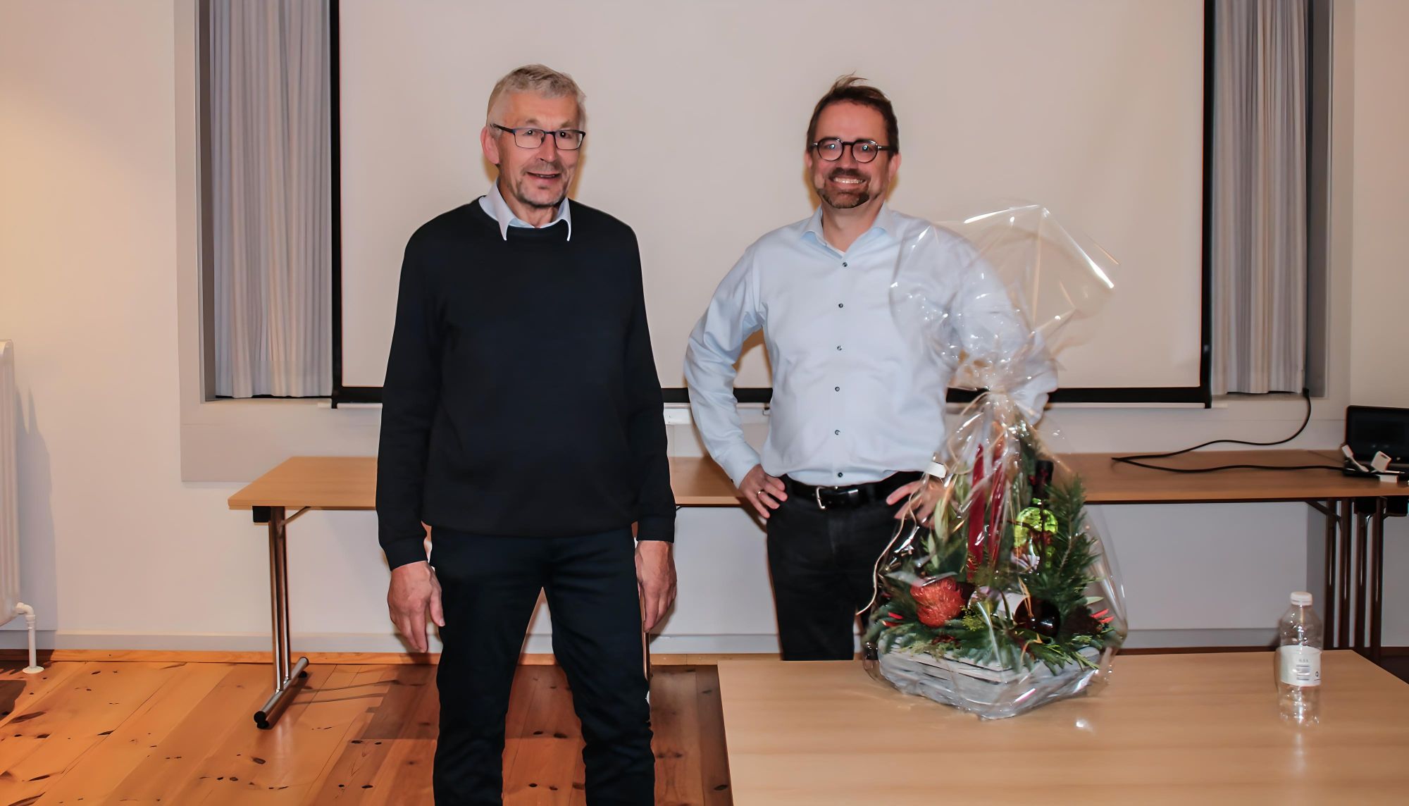 Formanden for lokalrådet Vejle Vesteregn, Niels Uth, her foreviget sammen med Peter Vind Larsen. Foto: Søren Grunnet