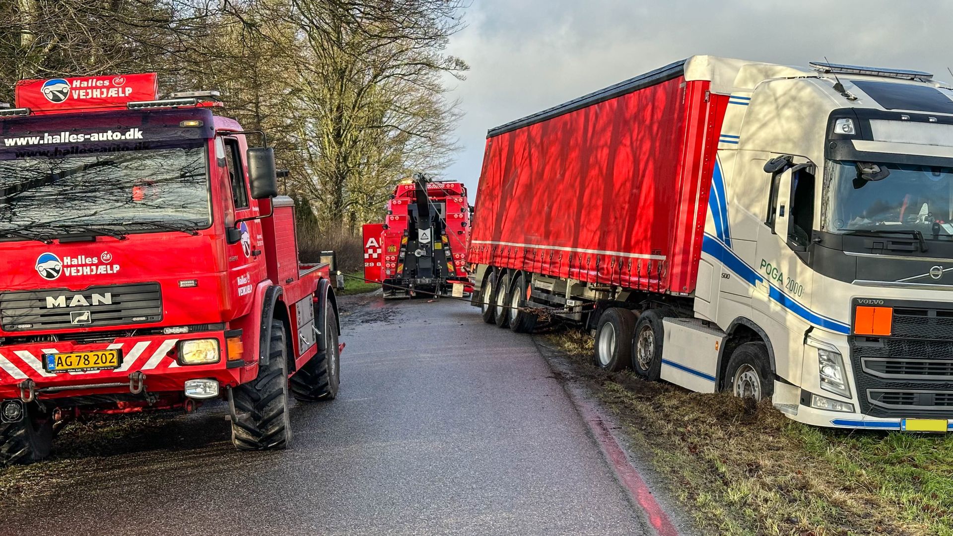 Som man ser på billederne, så var det egentlig ret udramatisk, Lastbilen væltede ikke, og chaufføren var ok. Falck ankom med en kranbil, men dette var ikke tilstrækkeligt, så der måtte tilkaldes yderligere en kranvogn fra Varde for at få lastbilen op på vejen igen.