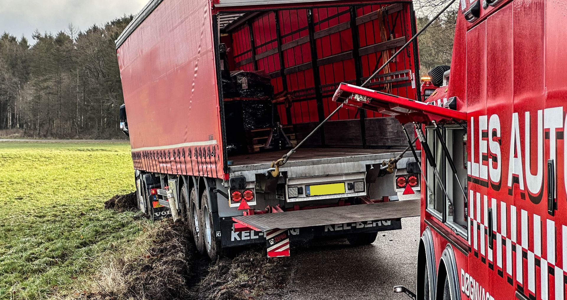 Lastbil med krudt kørte i grøften ved Thyregod