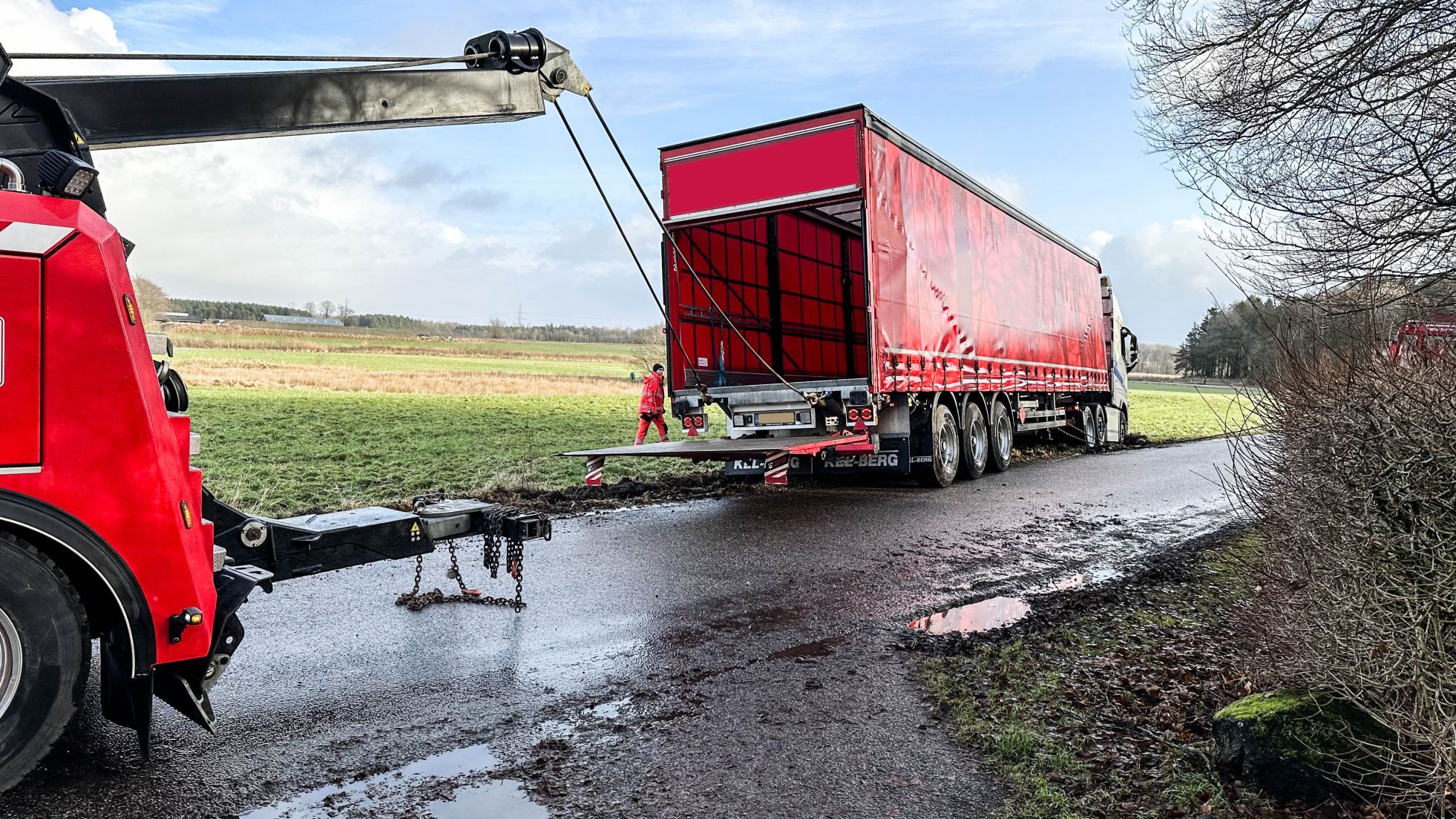 Efter en god halv times fint kranarbejde tid var lastbilen atter på farten.