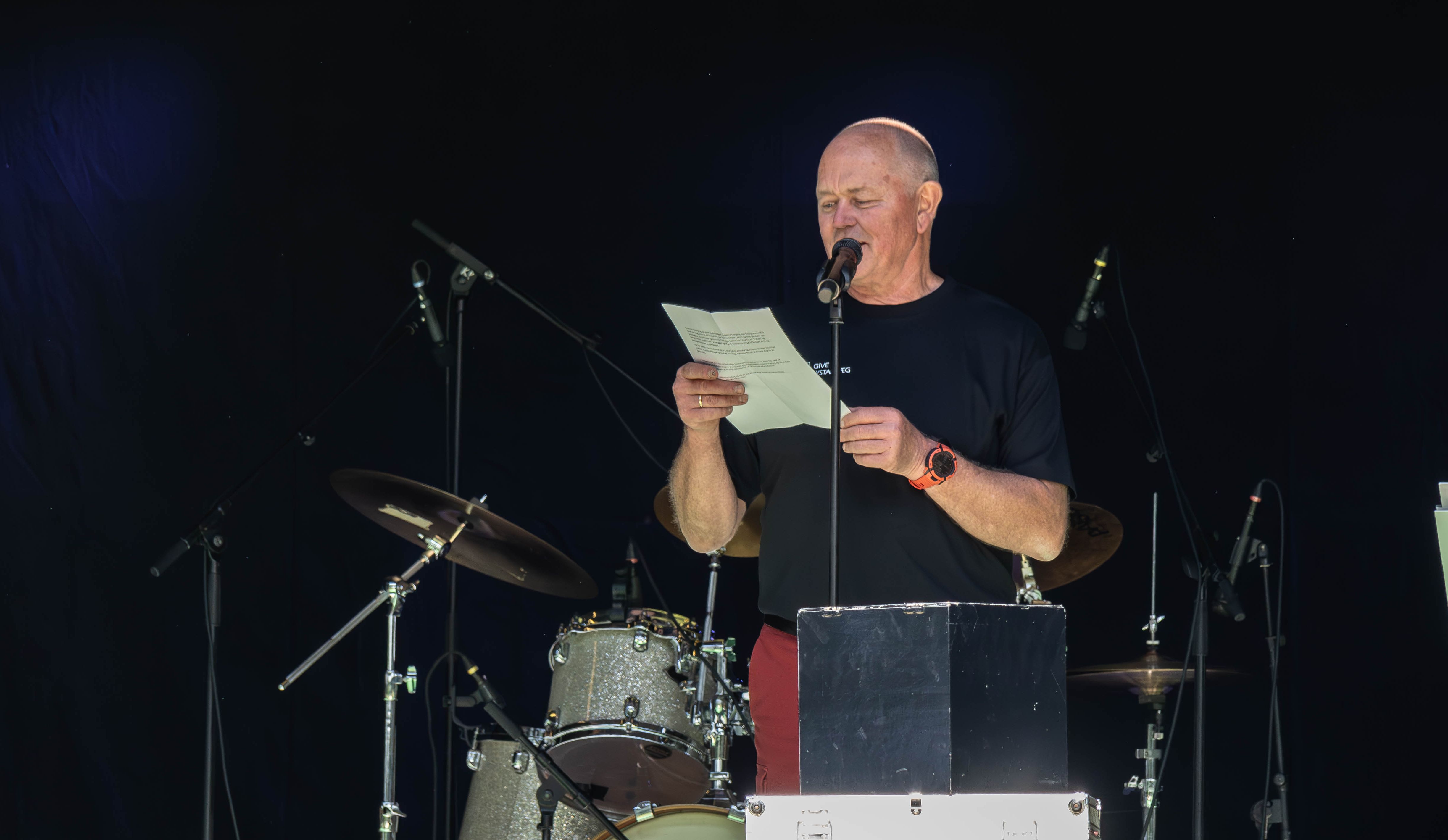 Han overlod herefter mikrofonen til Gerda Jørgensen, der denne dag var på scenen som formand for Give GIF.