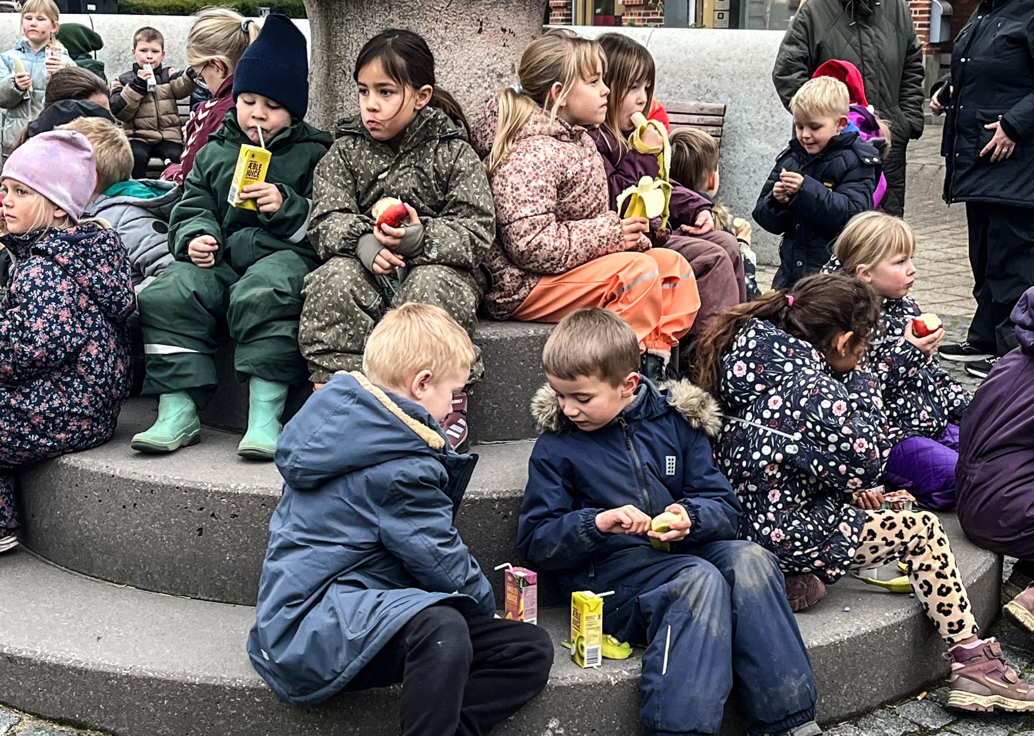Så da det store træ på Torvet var pyntet og alle børn havde fået frugt, juice - og et lille stykke slik - gik det i rask trav omkring juletræet med den smukkeste julesang gjaldende ud i byen.
