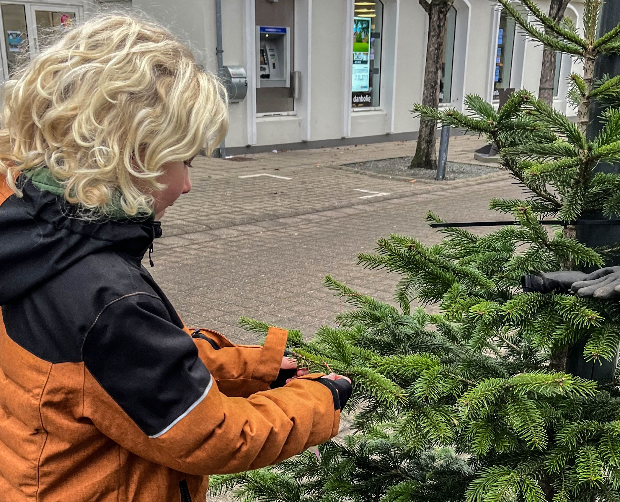Byens træer ser lige nu fantastisk ud og husk når du ser det flotte julepynt: det er et af byens børn der har bidraget til fællesskabet for at løfte byen.