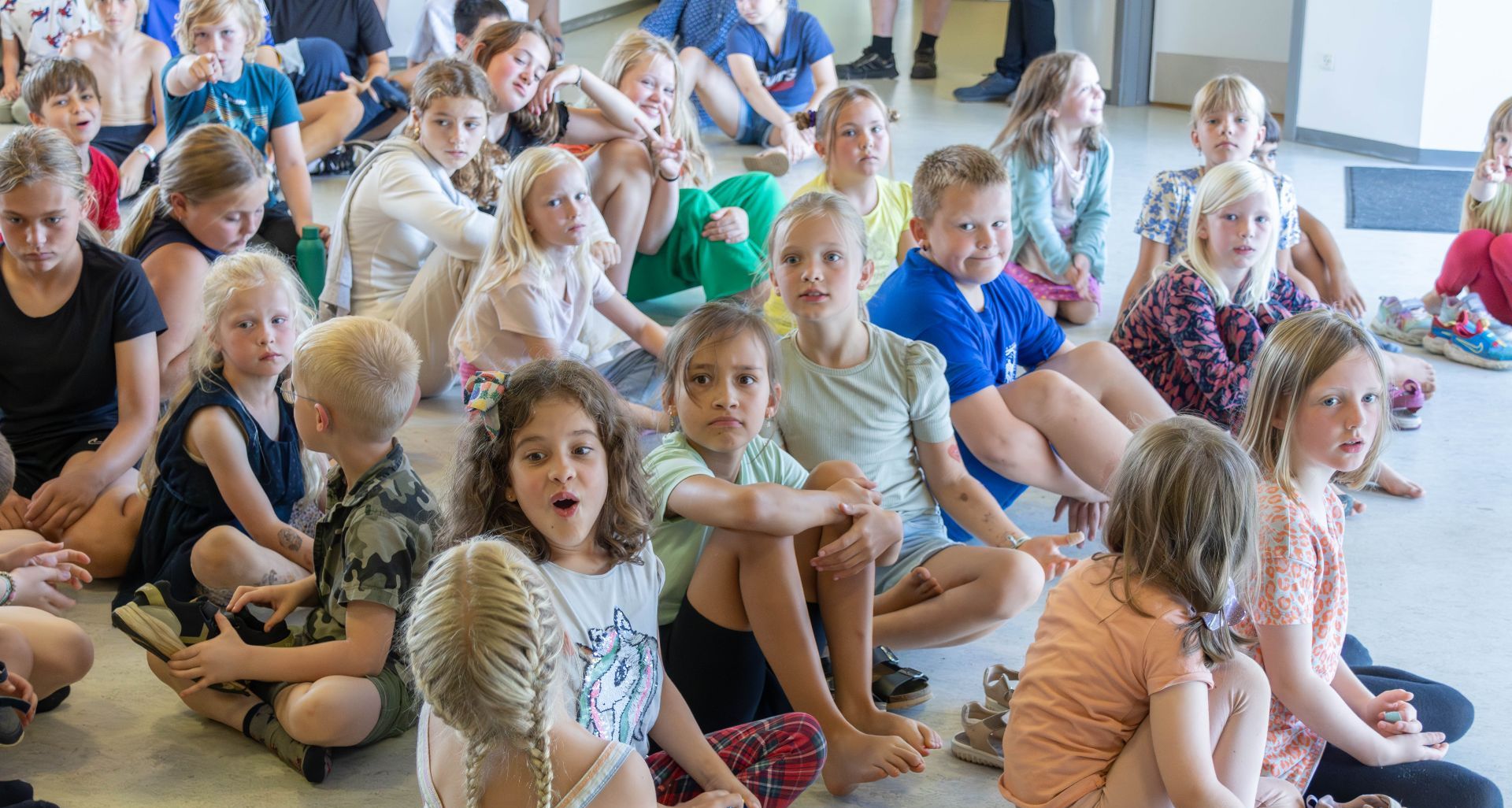 Alle disse børn fra Elkjærskolen har nu måttet finde nye skolegræsgange, efter at Børne- og Familieudvalget har anbefalet en lukning af skolen den 31.12.2024. Foto: Jim Hoff