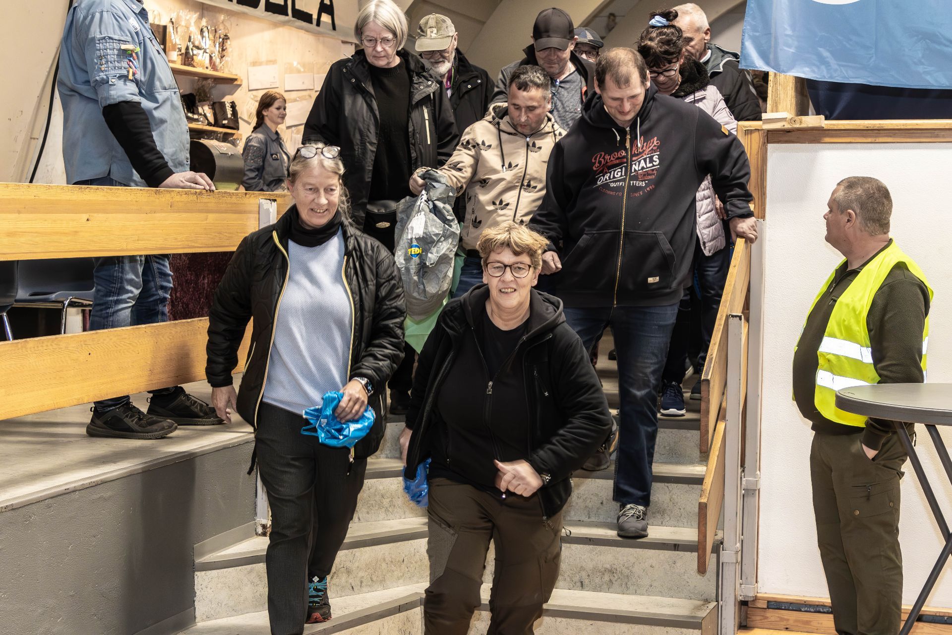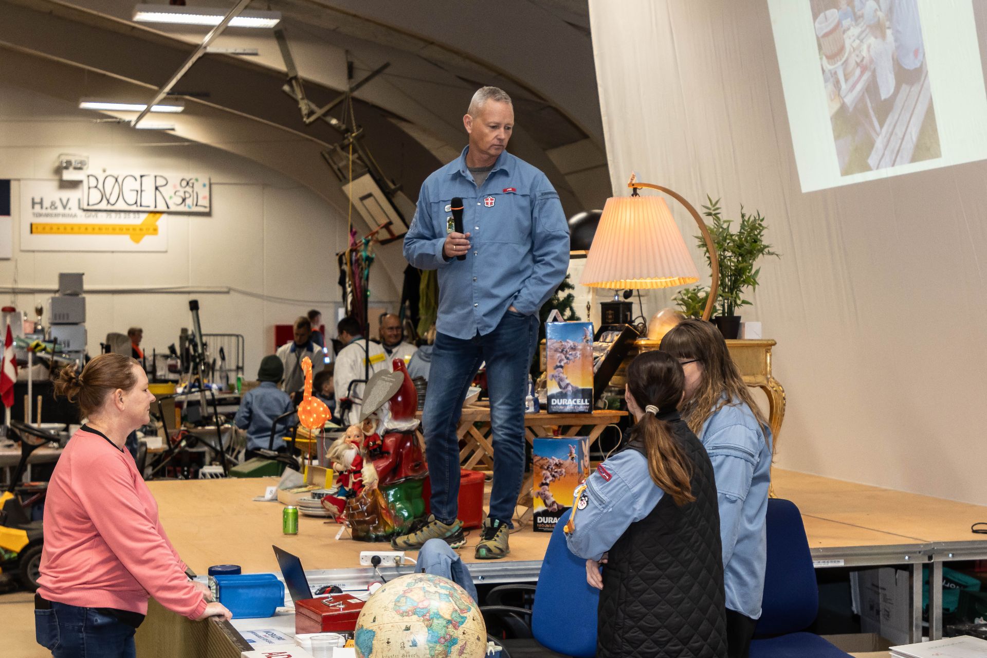 - I løbet af ugen her, hvor vi har gjort klar og fundet effekterne frem til hallen, har vi faktisk gået og snakket om, at det her jo faktisk er rigtig sjovt det her. Der er et vildt godt sammenhold, humøret er højt, og det hele kører bare på skinner, så man får jo periodisk lyst til, at vi skal fortsætte med loppemarkedet. Men vi må bare erkende, at uanset hvor godt og sjovt det er, når det hele bare kører og det vælter ind med folk i hallen, så er det også en godt ting at vide, at vi ikke mere skal tænke på og knokle med at finde frivillige. Arbejdsbyrden, også den mentale, er simpelthen blevet for stor, det må vi bare ærligt indrømme, konstaterer Claus, alt imens der kaldes til samling i de respektive salgsgrupper, så alle kan få en gameplan at køre efter.