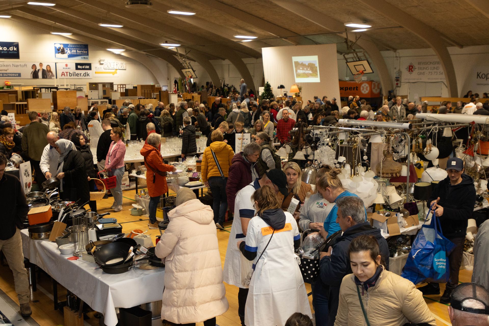 Der var masser af folk i hallen både fredag og lørdag til FDF'ernes sidste loppemarked. Foto: Jim Hoff