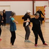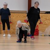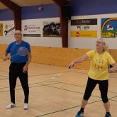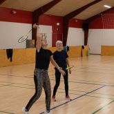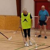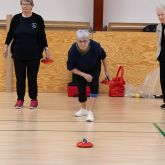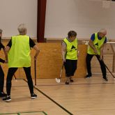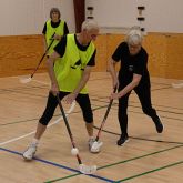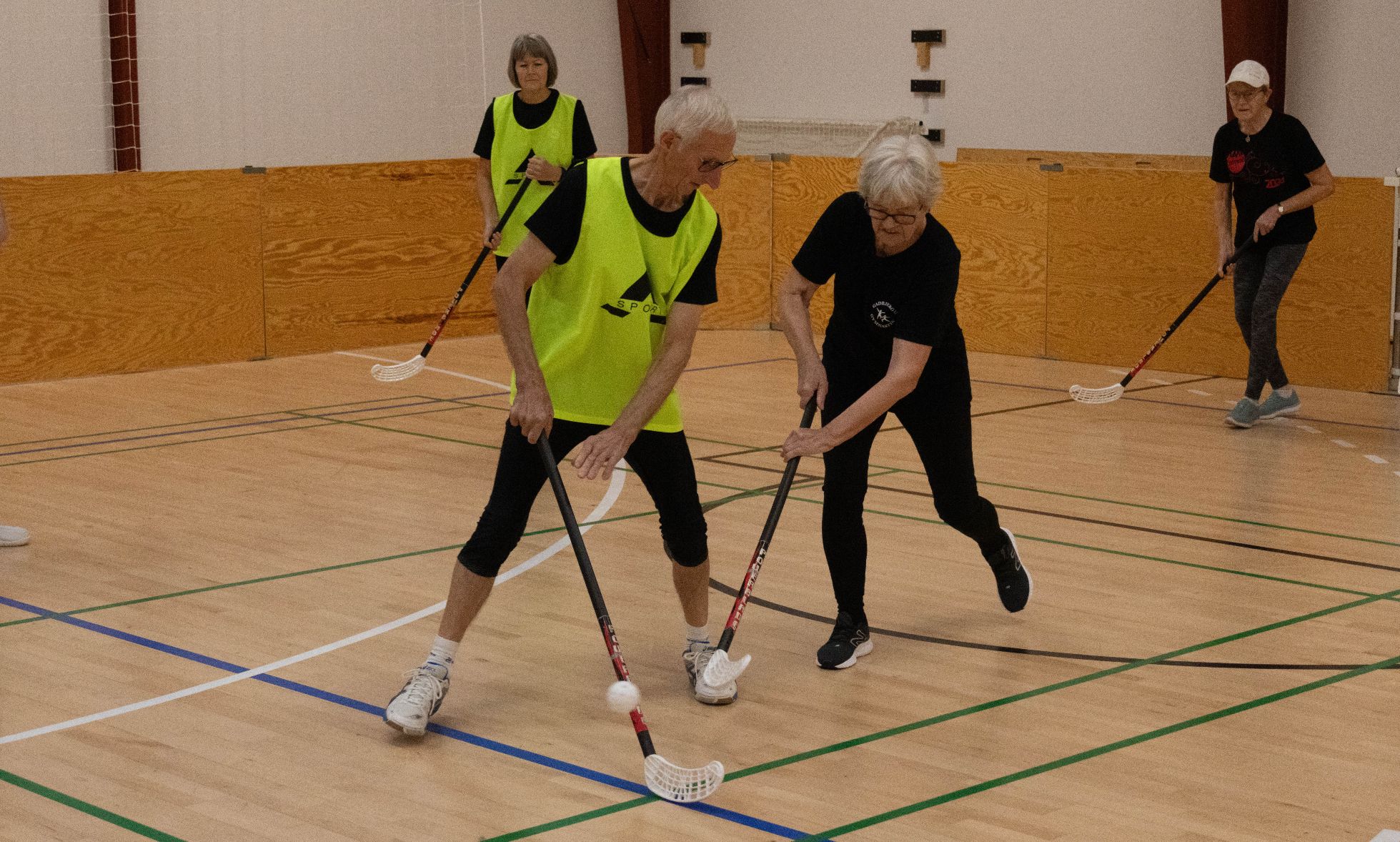 - Idræt i Dagtimerne har været på banen her i Gadbjerg i 5 år, og pt. har vi i alt 35 medlemmer i. Vores ældste medlem er 83 år, og den yngste er 64 år. Vi mødes hver tirsdag fra 9.15 til 11.00, hvor vi starter med en god gang opvarmning ved Anna Østergaard, der sætter et fint program sammen til noget rigtig godt musik. Derefter fordeler vi os ud på forskellige aktiviteter som floorball, der et stort hit, badminton, pickleball, indendørs petanque, tæppecurling og gåture ude i naturen.