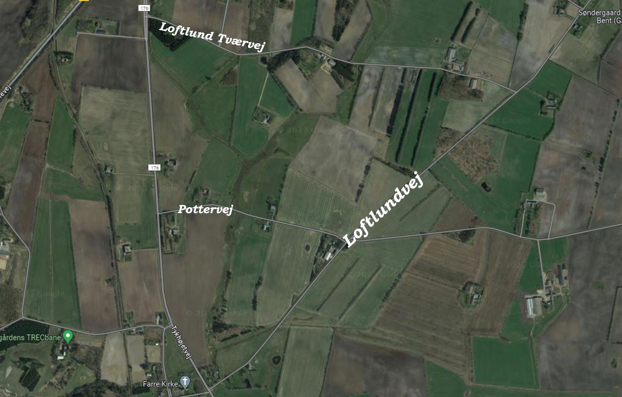 Give Fjernvarme udfører ledningsarbejde på Tykhøjetvej. Rute 176 vil være spærret på strækningen mellem Pottervej og Loftlund Tværvej i perioden fredag d. 19/1 kl 18:00 til mandag den 22/1 kl. 06:00. Der er omkørsel via: Østerhoved og Loftlundvej. Grafik Google