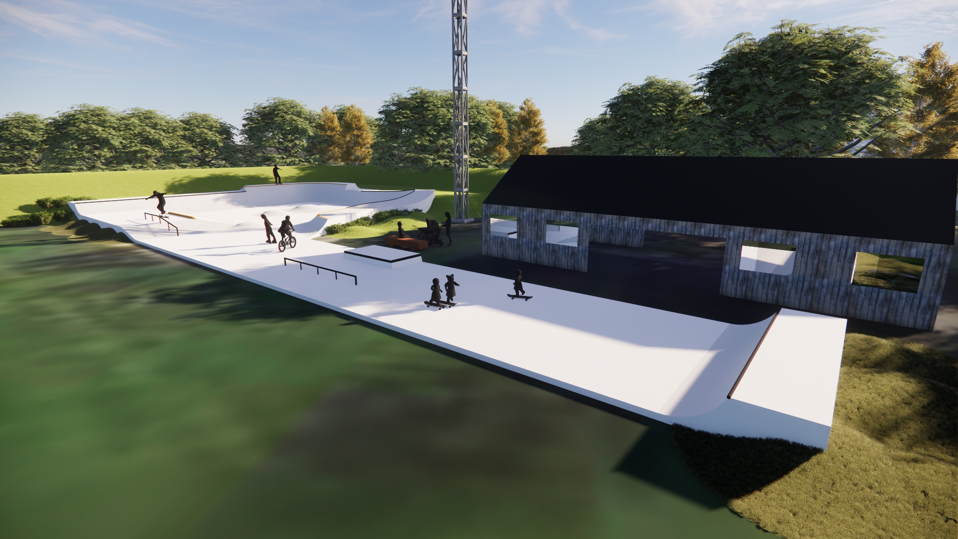 Hele grundtanken bag den nye skaterpark er at skabe et mødested for byens unge og børn, hvilket ikke mindst understøttes af den optimale placering ved skolen og hallen - områder hvor byens ungdom i forvejen færdes dagligt.