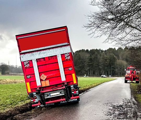 Lastbil med krudt kørte i grøften ved Thyregod