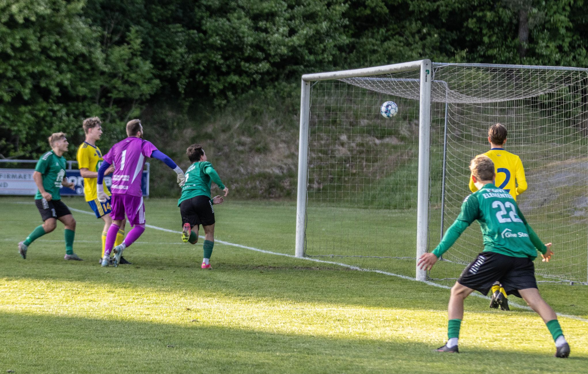 Jonas Østergaard foretog et elegant og teknisk højt niveau slalomløb med bold gennem gæsternes defensiv i højre side. Han sendte derefter en dejlig hård og præcis bold ind i feltet, og her dukkede Kris Larsen op som en trold af en æske i bedste Patrick Mortensen-stil og helflugtede kuglen i klassen med et brag af et hovedstød.