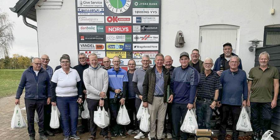 GIVE: Deltagerne til årets sidste turnering i Give Golfklub mødte op i regn og rusk, men da det blev tid til tee-off kl. 10.00, stoppede regnen, så der blev spillet i tørvejr.