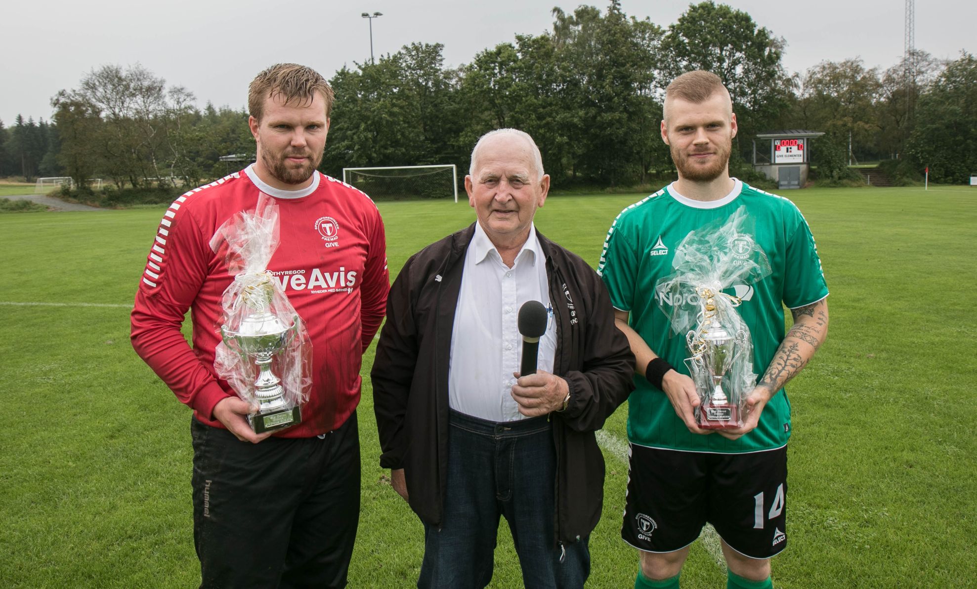Foto: Give Fremads jyllandsserieholds keeper Jan D. Rasmussen bliver op til kampen tirsdag aften på hjemmebane mod Varde hyldet for 300 kampe for Give Fremad. Foto: Jim Hoff