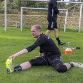 - Jeg er oprindeligt fra Slesvig Idrætsforening (en dansk idrætsforening i det nordlige Tyskland, red, hvor jeg i en periode på 10 år var med til at spille klubben op fra serie 5 til Jyllandsserien 1. Nu bor jeg i Givskud og arbejder på Thyregod Skole som lærer, og det var her, at min kollega Mikkel Knudsen (tidligere Give Fremad-spiller, red.) anbefalede mig, at jeg skulle vælge Give Fremad som min nye klub, fortæller Kenny, mens målmandstræner Rasmus Thisgaard gør klar til at piske Kenny og klubbens to andre målmænd, Philip Jensen og Jan Rasmussen igennem.