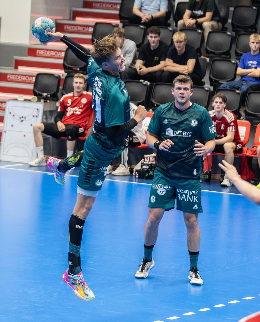 Mikkel Molbech spillede en flot kamp med 10 mål på 12 forsøg. Det hårde arbejde på træningsbanen begynder nu at vise resultater for den skudstærke bagspiller. Foto: Jim Hoff