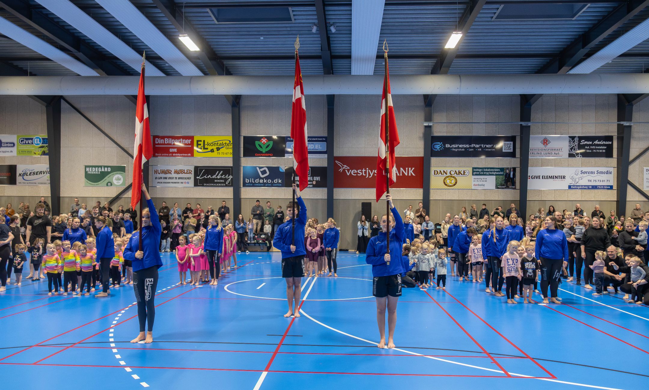 Flot indslag og en fantastisk start på lørdagens opvisning. Det skal også lige noteres, at der, inden opvisningen gik i gang, var en fin hyldest til tre andre jubilarer i foreningen, idet Malene Pasgaard, Mathias Korsgaard og Sofie Schmidt blev hyldet for 10 års frivilligt arbejde i gymnastikforeningen i Give.