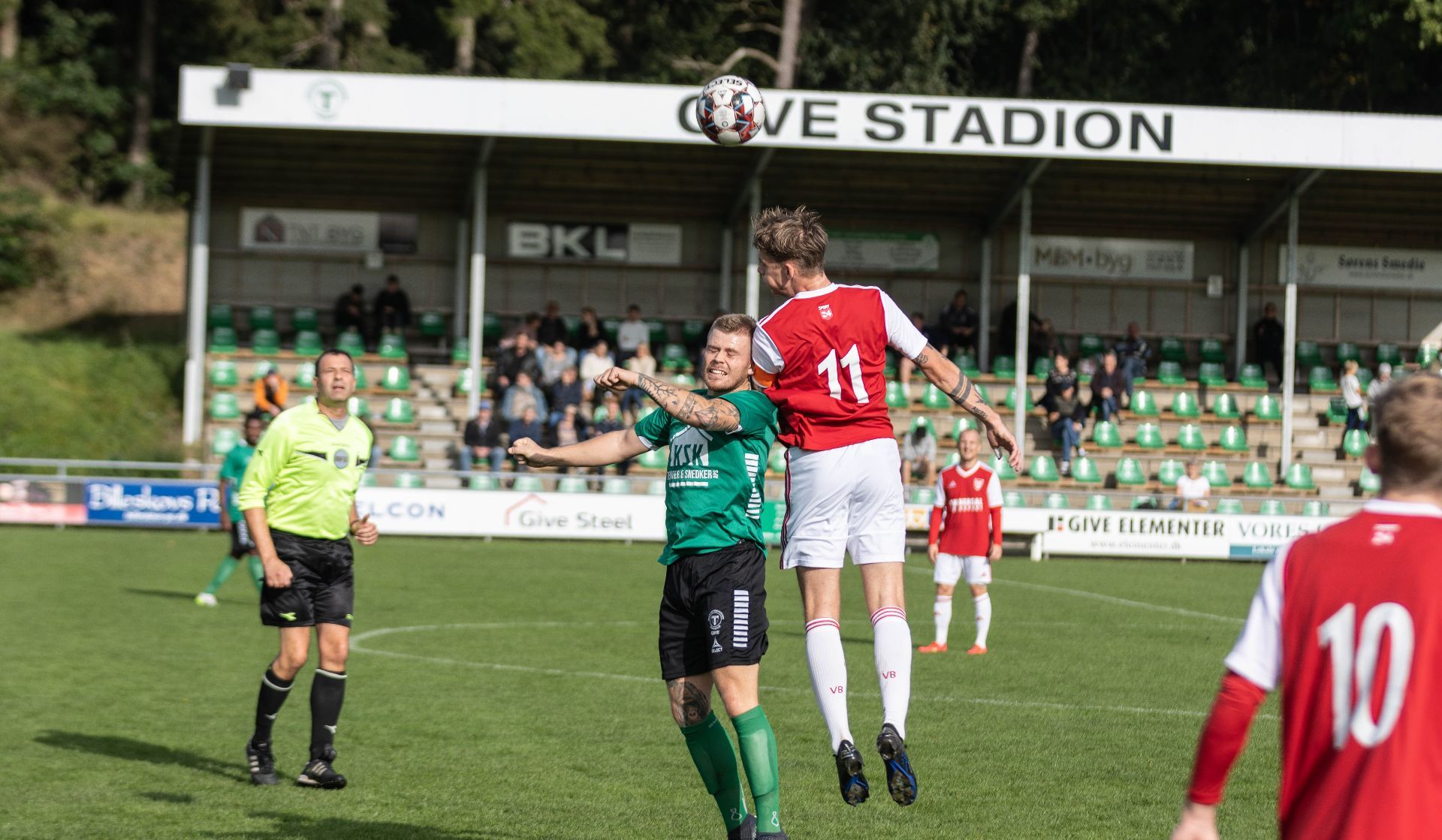 De hev den hjem med hiv og sving, men Give fik sat 3 points ind på kontoen, selv om de var i undertal i kampens slutfase, da anfører Kasper Larsen fik rødt kort. Det blev en kamp spillet den i onsdags afdøde tidligere holdleder Sv. Aage Bachs ånd, for der blev virkelig kæmpet igennem.