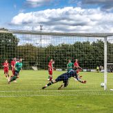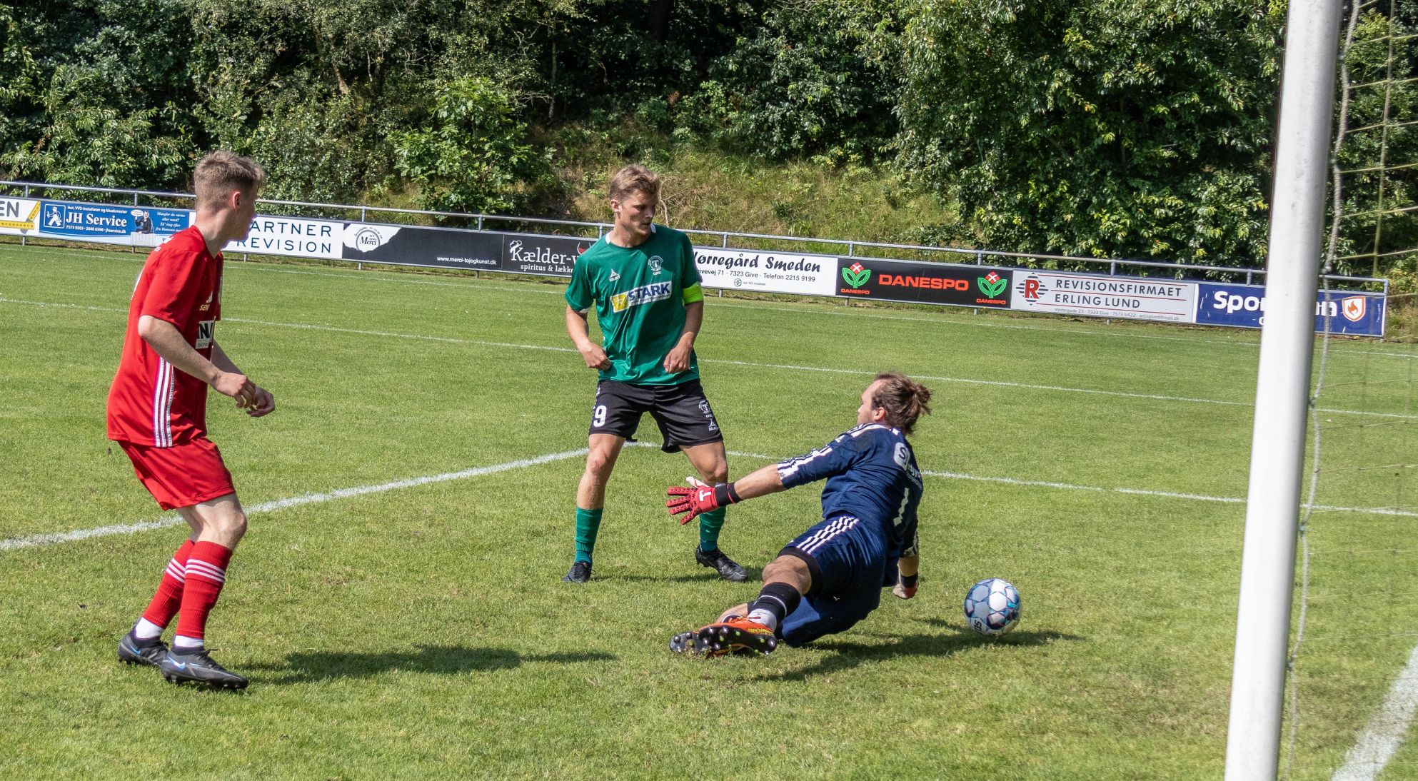 Jakob Kristensen triller helt cool bolden i mål til 3-1 efter flot forarbejde fra Magnus Bitsch. Foto: Jim Hoff