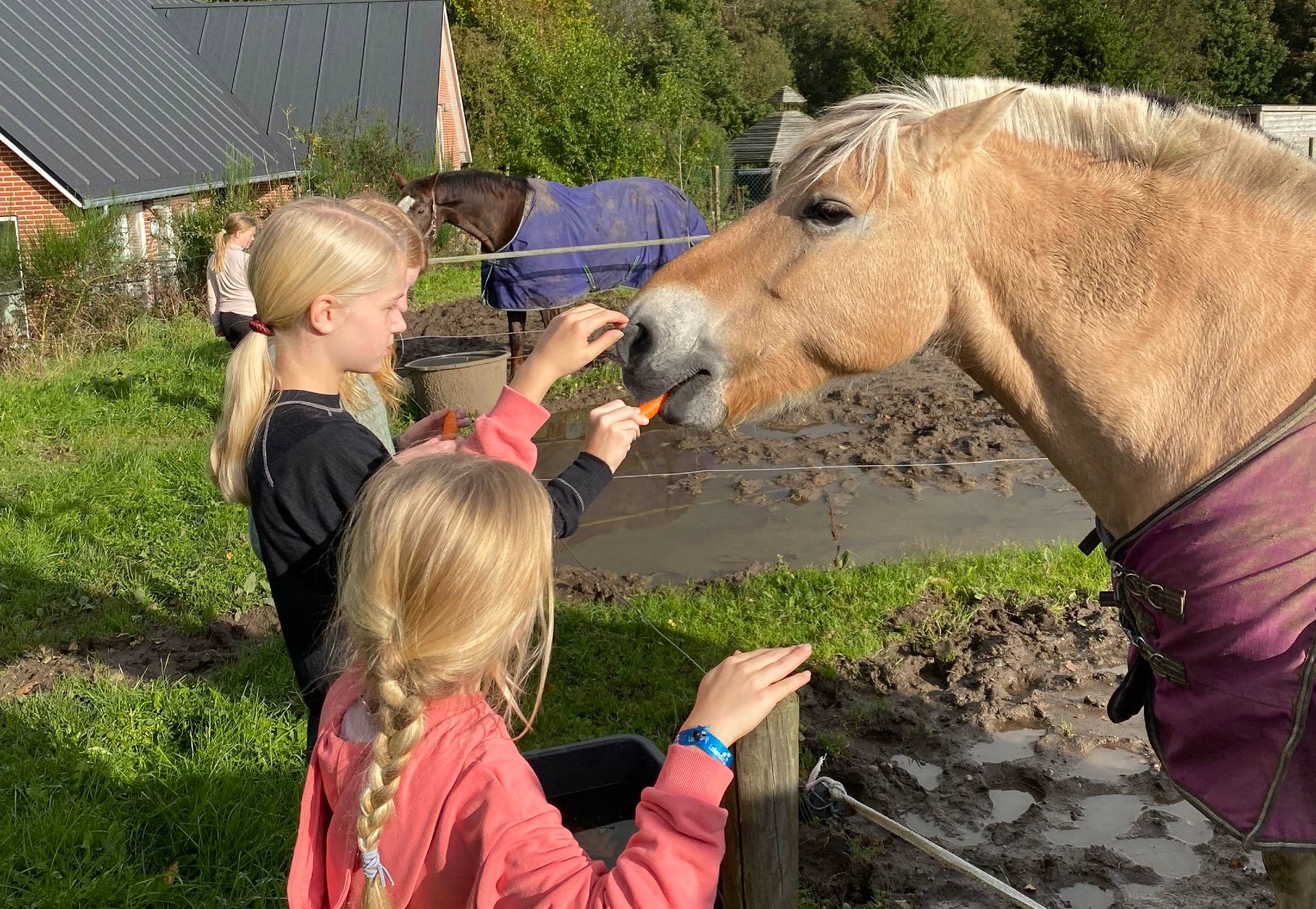 I løbet af dagen blev der også tid til et besøg i stalden og ved foldene, hvor de rigtige, levende heste kunne fodres med gulerødder, så hvis nogle forældre synes, at deres børn kom hjem med en skøn hesteduft i tøjet, så var det altså ikke fra kæphesten.