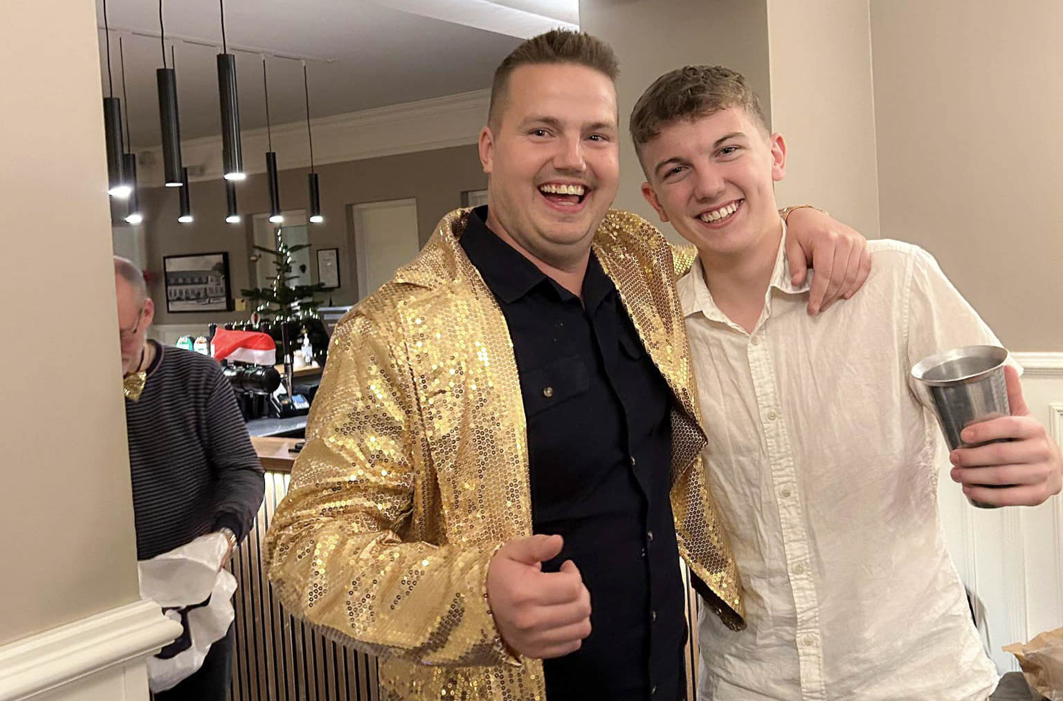 Kampen mod KB giver debut til keeper Philip Jensen, der gør det rigtig godt på klubbens serie 1 hold. Her ses den unge sammen med 2. holdets assistenttræner Flemming Duus (den flotte fyr i guldjakken), hvor Philip bliver kåret til Årets Talent. Foto: Give Fremad