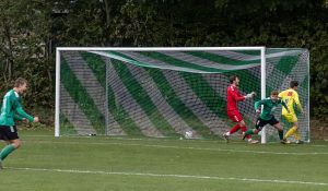 - De første 20 minutter bliver det til lidt løse chancer, og i det 23. minut har Martin Ørnskov et hovedstød, der rammer overliggeren. Men i det 24. minut går det så galt for os, da Brandes dygtige angriber Nikolaj Jakobsen scorer et flot mål med et brag af et hug fra kanten af feltet.