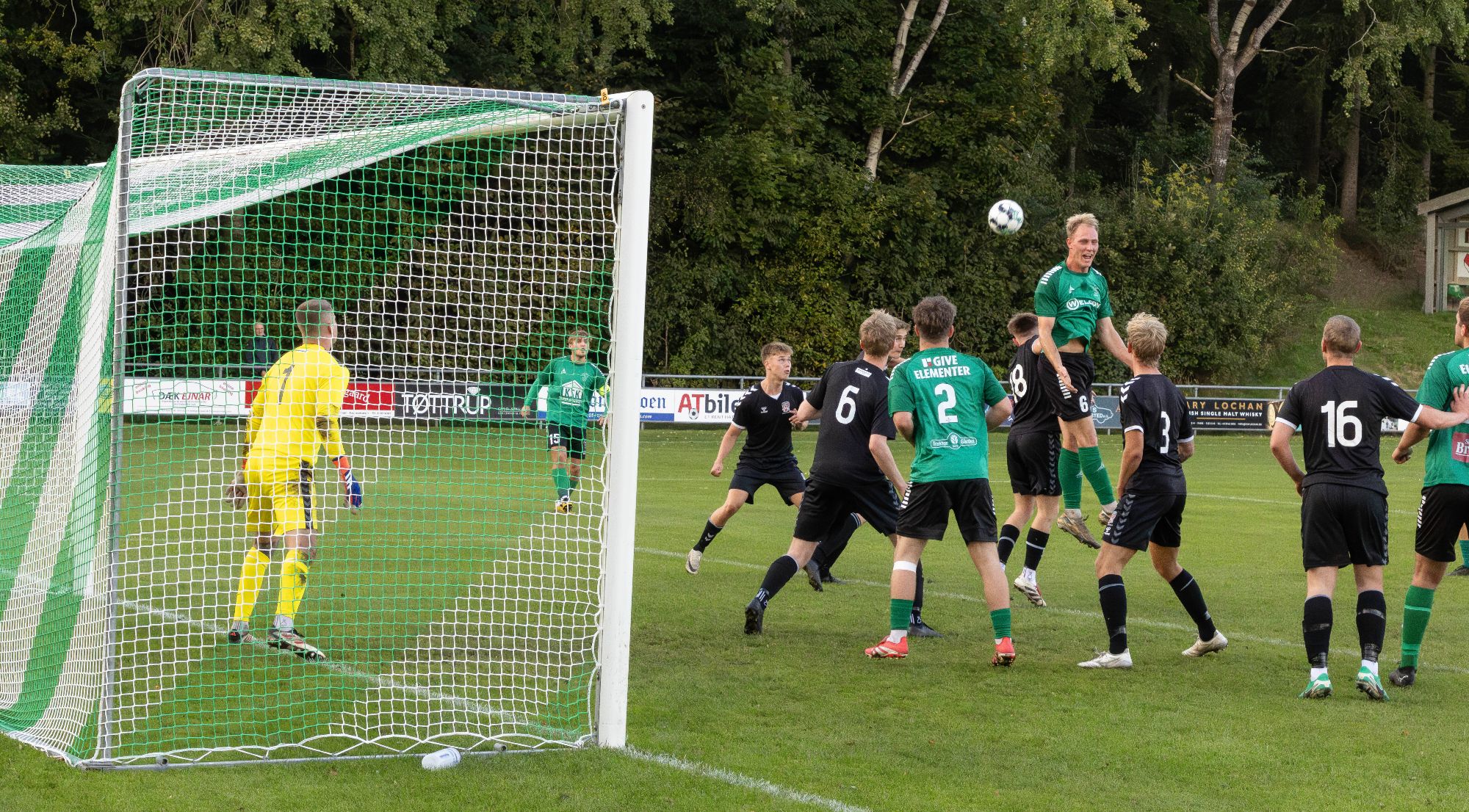 Ny sejr til Give over Brande: Mortensen scorer sejrsmålet på hovedstød i lokalbrag i det 95. minut